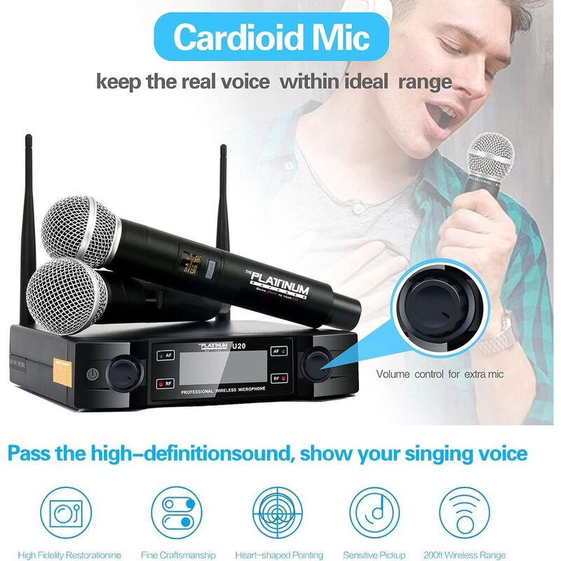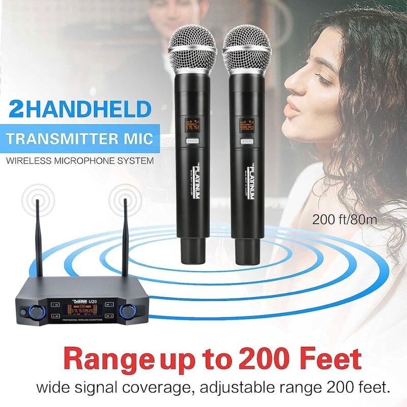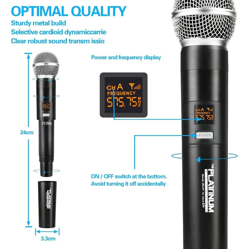 The Platinum Wireless Microphone System, Metal Professional Dual Channel Handheld Dynamic Mic System with Professional Karaoke Receiver, for Party, KTV, Meeting, Wedding, DJ, Church,200ft, UHF