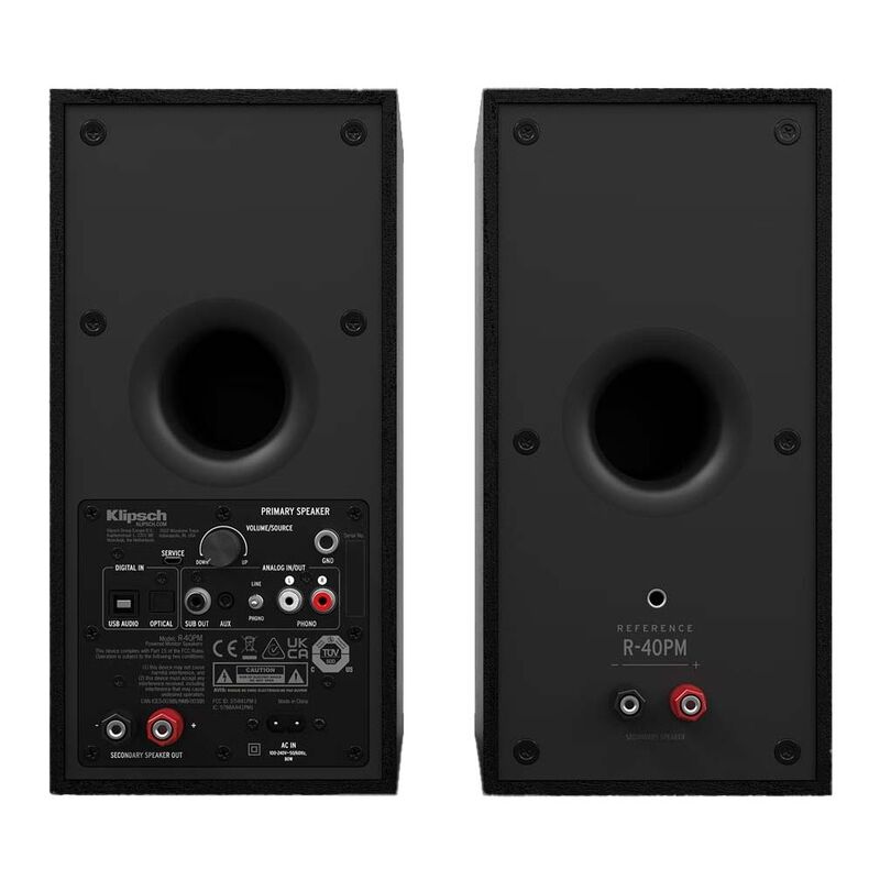 The R-40PM powered speakers connect via Bluetooth® for music streaming, phono (with ground screw terminal) for turntables, plus digital and analog for everything in between. And because Klipsch engineers built in a customized amplifier, you get perfectly tuned sound experiences – no audio/video receiver (AVR) required.