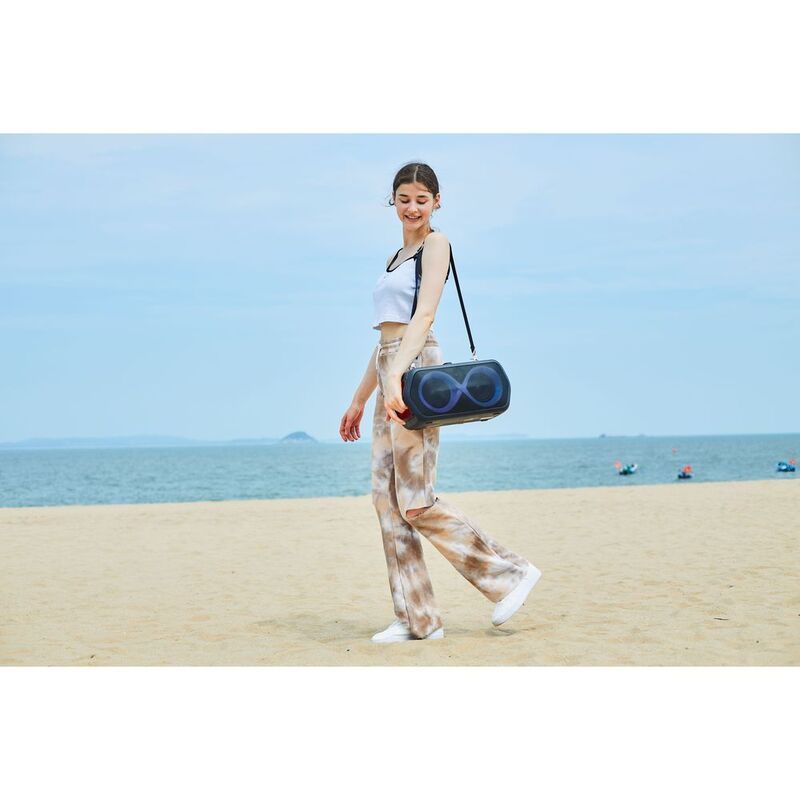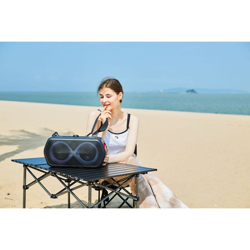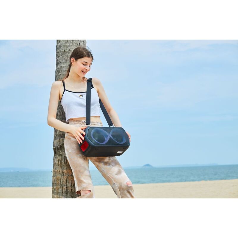 - With 80W output power, RGB color lighting effects, and a water-resistant IPX5 rating, this speaker is perfect for indoor and outdoor use.