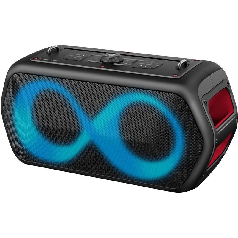 Monster Musicbox Go Get ready to take your party to the next level with Musicbox Go! Featuring Bluetooth V5.1 technology, you'll be able to sing and dance along to your favorite tunes with crystal clear sound. With 80W output power, RGB color lighting effects, and water-resistant IPX5 rating, this speaker is perfect for indoor and outdoor use. Let the music flow and the good times roll!