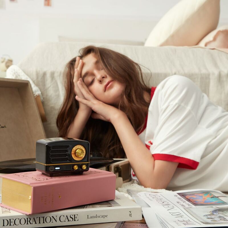 he ultimate MUZEN OTR Metal packs a mighty punch. This mini throwback unit cranks out 5W of full stereo sound from a high-performance driver and bass circuitry that produces surprisingly massive lows for such a tiny speaker. It won a CES Innovation Award for its crystal-clear audio and seriously bass-heavy sound that bursts from this pint-sized unit. Wireless Bluetooth and FM connectivity, a rugged metal casing, an old-school analog dial, and up to 10 hours of battery life combine retro 1960s style with modern award-winning audio tech. In short, the OTR Metal packs authentic vintage looks and modern audio muscle into one sweet little package.
