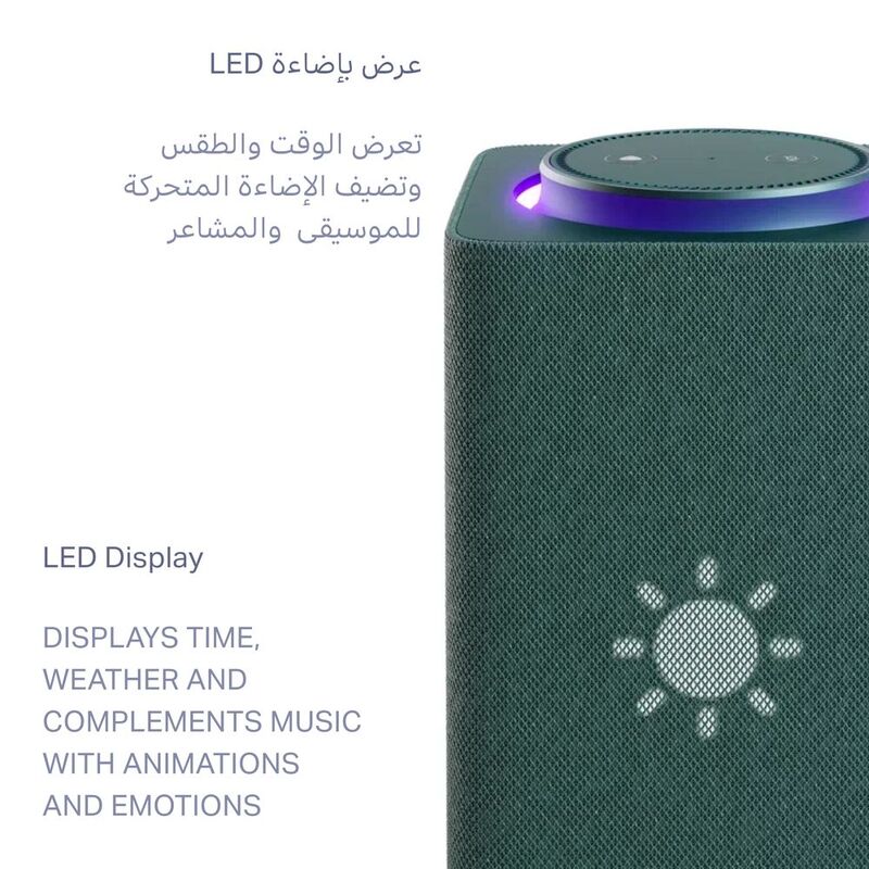• When YASMINA is not busy with anything, the LED screen shows the time or weather. And when you talk to her, she complements the answers with animation and expresses emotions. Say something nice to YASMINA and she'll wink at you.