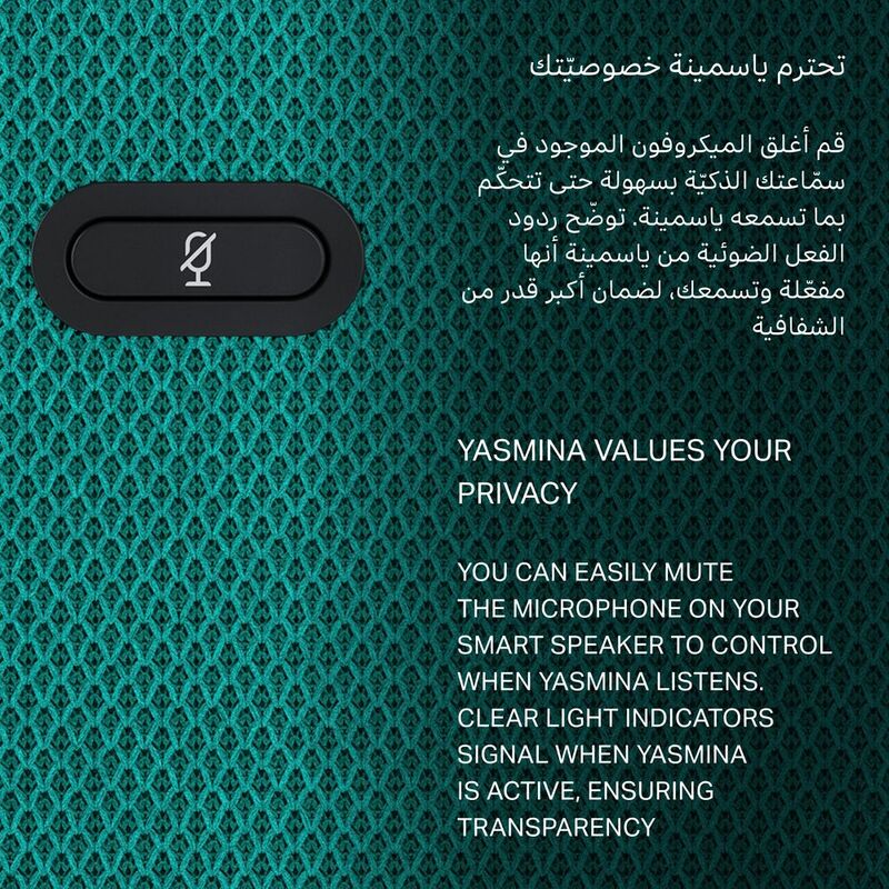 You can easily mute the microphone on your smart speaker to control when she listens. Clear light indicators signal when Yasmina is active, ensuring transparency.