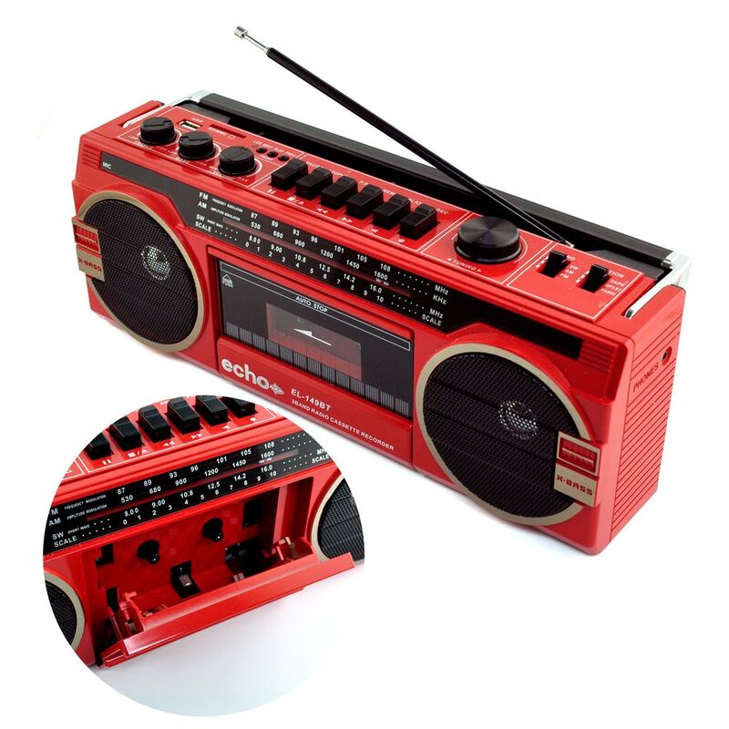 Echo Audio Retro Blast Radio Cassette Player With Bluetooth - Red