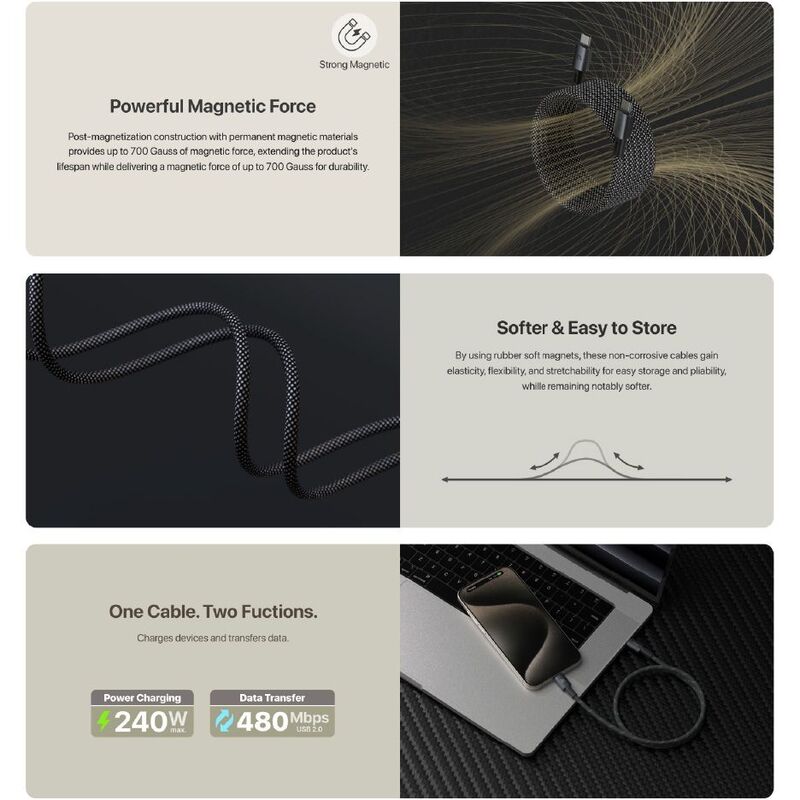 ADAM elements CASA MP100 USB-C to USB-C 240W Magnetic Charging Cable 1m - Gray