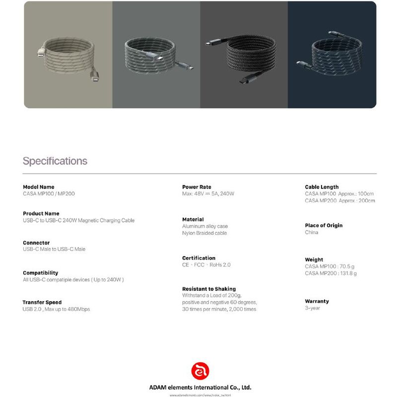 ADAM elements CASA MP200 USB-C to USB-C 240W Magnetic Charging Cable 2m - Blue