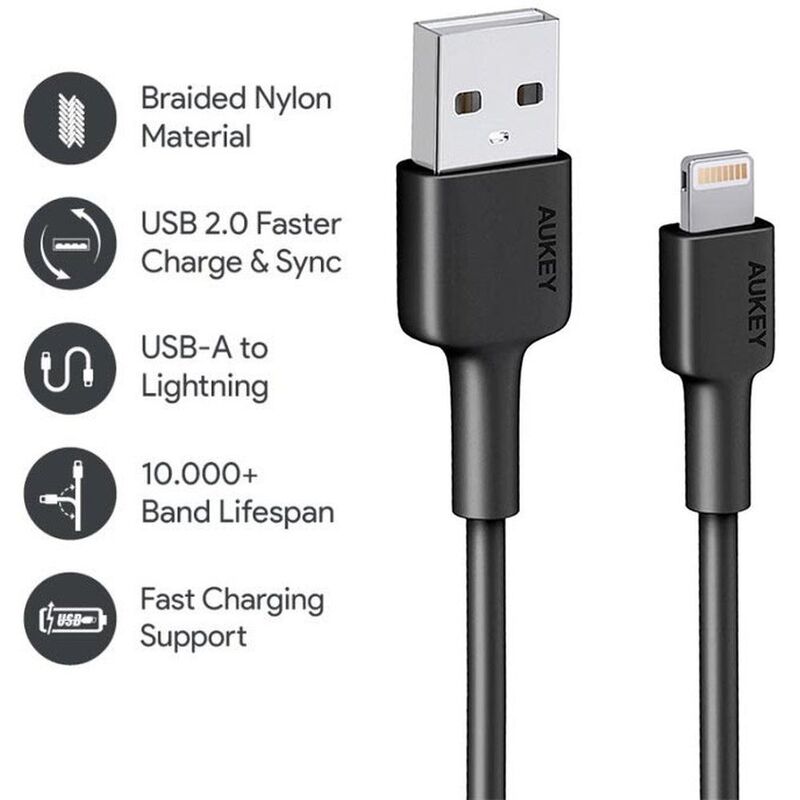 Aukey Nylon Braided USB-A To Lightning Cable (0.9m) Black