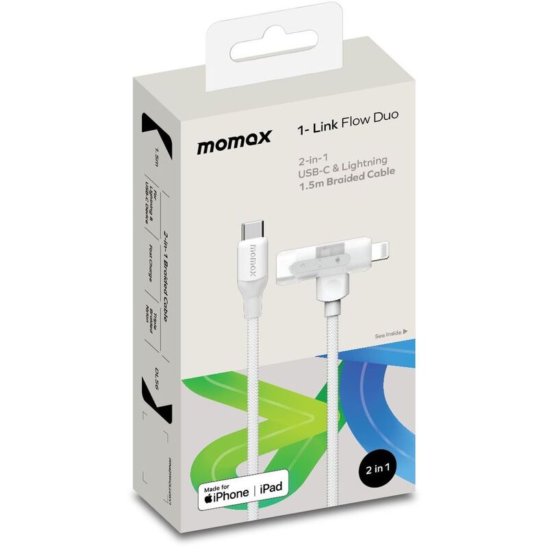 Momax 1-Link Flow Duo 2-in-1 USB-C To USB-C + Lightning Cable 1.5m - White