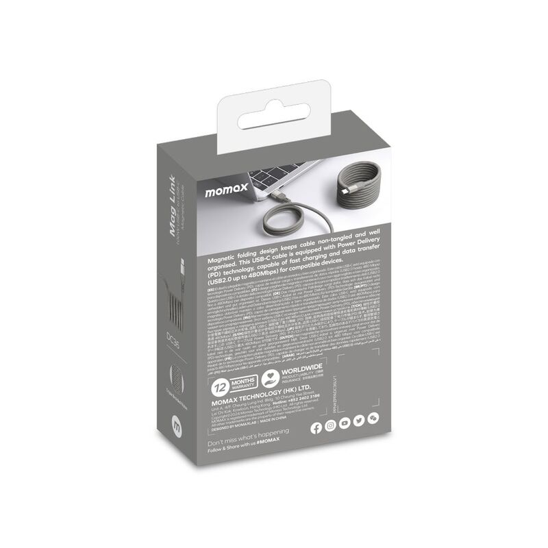 MOMAX ELITE MAG LINK 100W USB-C TO USB-C MAGNETIC CABLE 1M