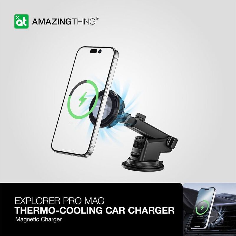 AmazingThing Thermo-Cooling Mag 15W Car Mount with USB-C to USB-C Cable 1.2m - Black