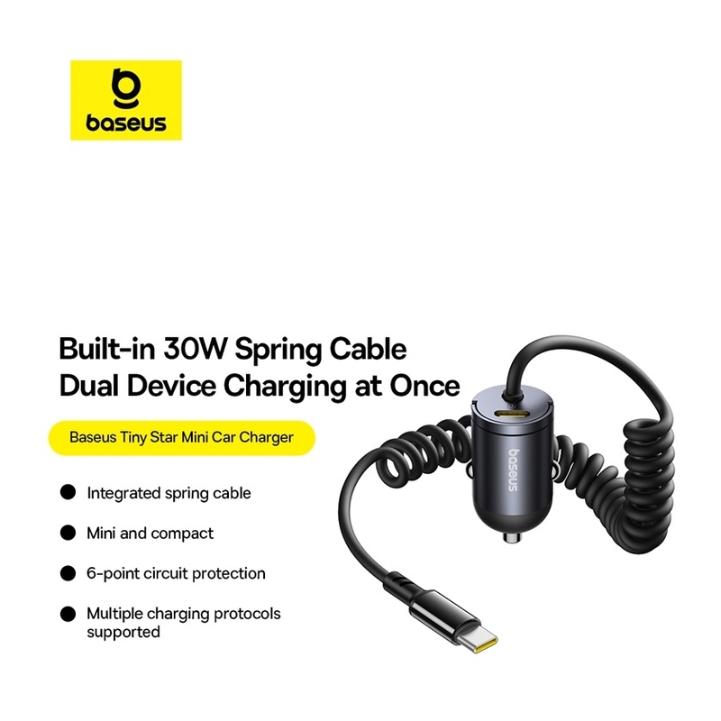 Baseus Tiny Star Mini Car Charger (C+C Cable Included) 30W - Cosmic Black