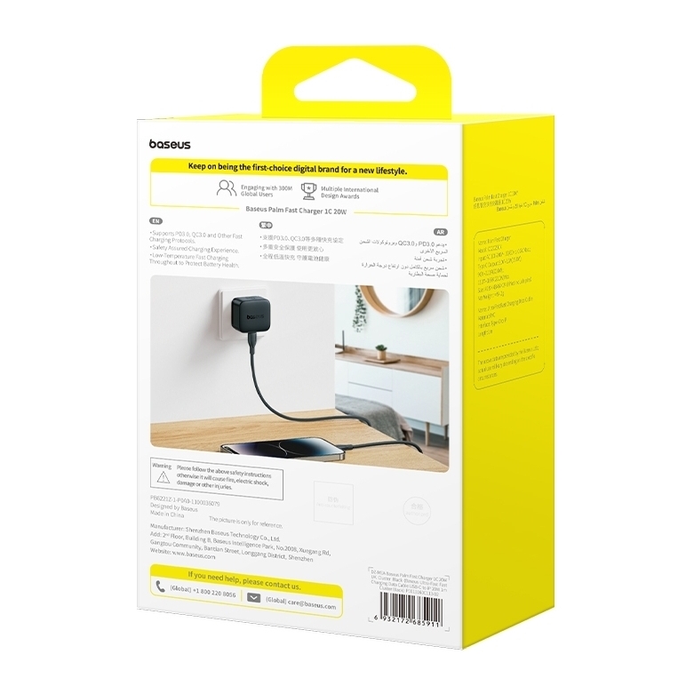 Baseus Palm Fast Charger 20W UKC to Lightning - Black