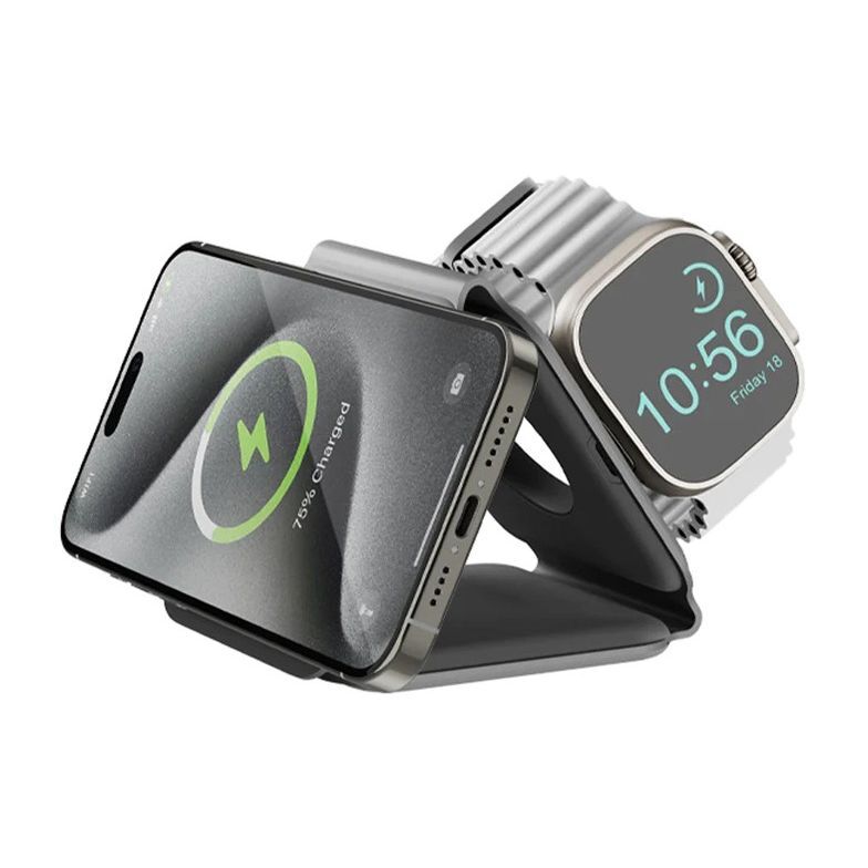BAZIC GoMag Trio Plus 3-in-1 Elevated Foldable Magnetic Wireless Charger 15W iPhone/Watch/Airpods - Grey