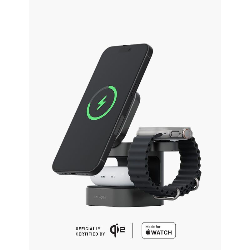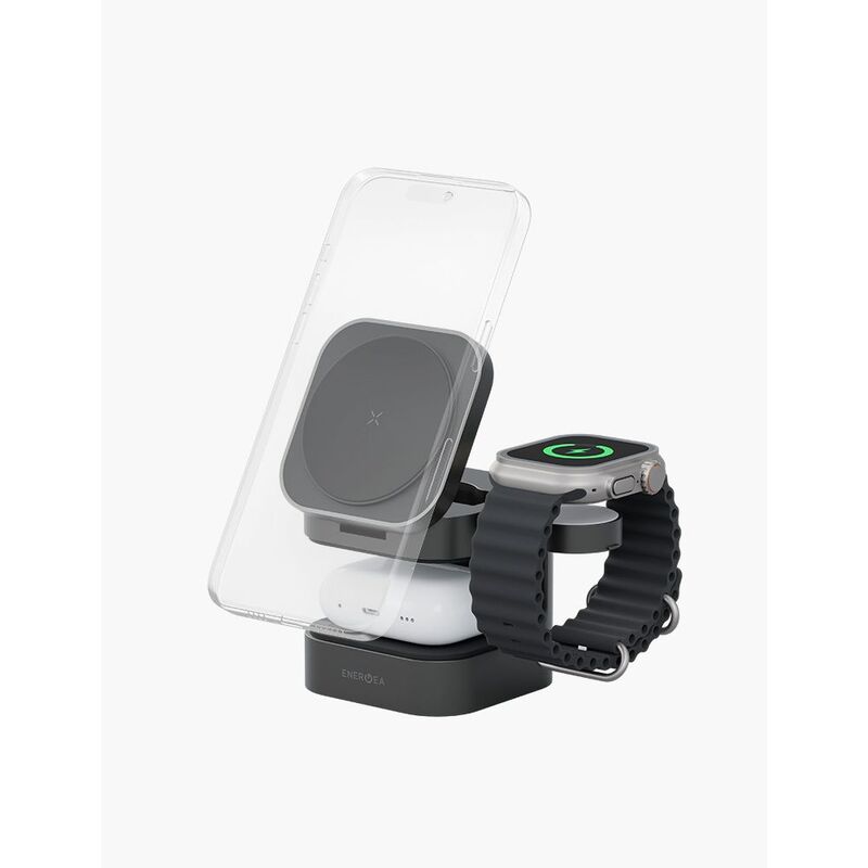 Energea Magcube 3-In-1 Foldable Qi2.0 Magnetic Fast Wireless Charger - Gunmetal