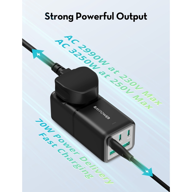 RavPower PC1062 PD 75W Desk Charger 3C 2A & Travel Charger Adapter - Black