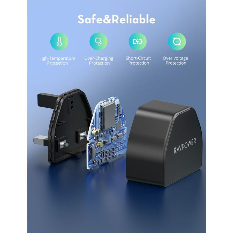 The RAVPower PD 20W Wall Charger is perfect for a variety of scenarios. Use it to quickly charge your smartphone overnight, power your tablet during meetings, or keep your devices charged while traveling. Its versatility makes it an essential accessory for anyone who relies on their gadgets daily. The RAVPower PD 20W Wall Charger with Type-C Port (RP-PC1041) is an outstanding choice for users seeking an efficient, portable, and reliable charging solution. With its powerful output, universal compatibility, and robust safety features, this wall charger is designed to meet the needs of today's tech-savvy consumers. Keep your devices powered up and ready to go with the RAVPower RP-PC1041