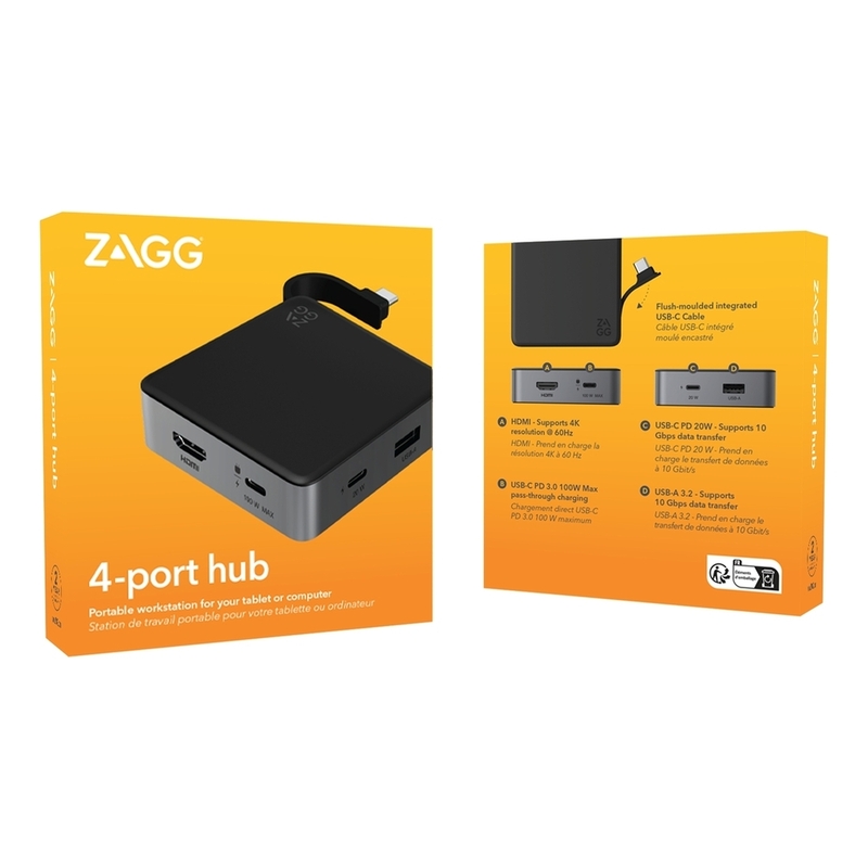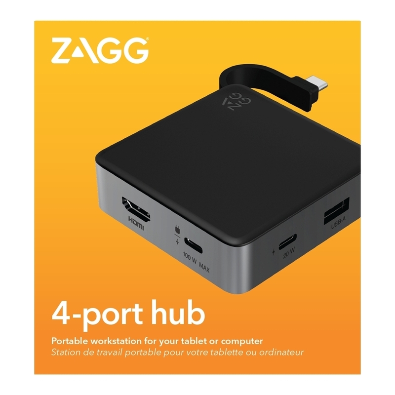 - Zagg 4-Port Hub - One USB-C Input to USB-C PD