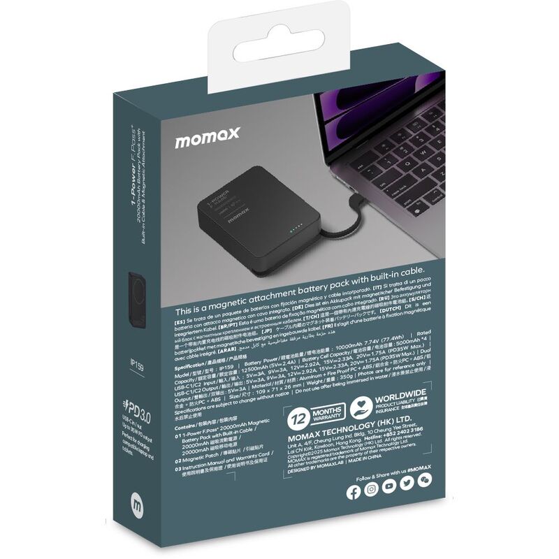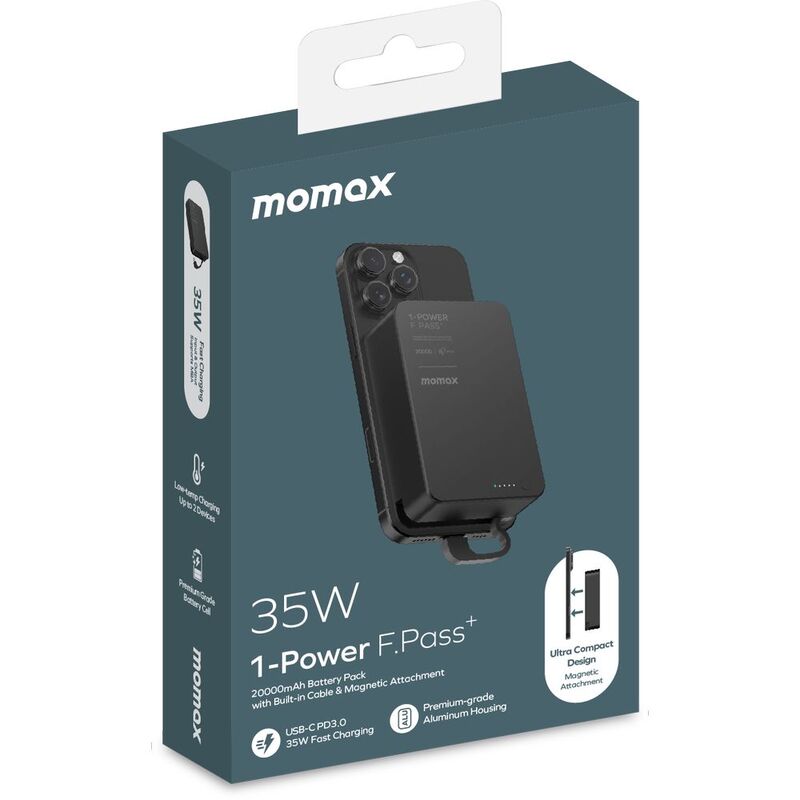 Momax 1-Power F.Pass+ 20000Mah Power Bank With Built-In Cable - Black