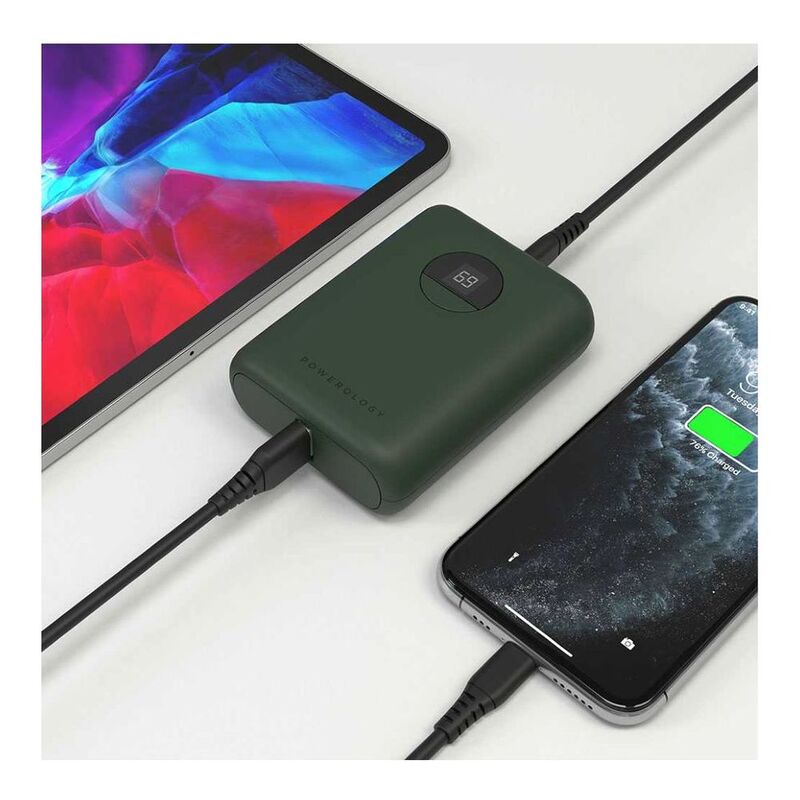 Powerology 10000mAh 18W PD & Qc3.0 USB-A/USB-C Power Bank Green