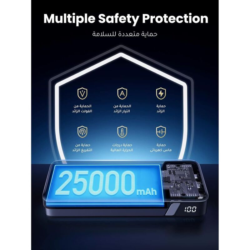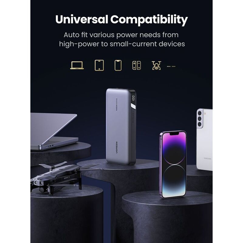 - 25000mAh High Capacity : UGREEN portable charge power bank can completely recharge iPhone 15 or other mobile devices devices up to 6 times and Macbook pro 14'' up to 1.5 times.