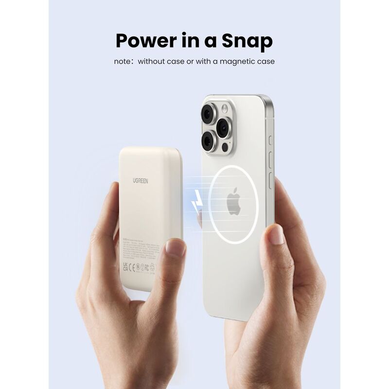 • UGREEN PowerBank 10000mAh 20W PD Magnetic Wireless 15W Max + USB-C 20W PD Beige