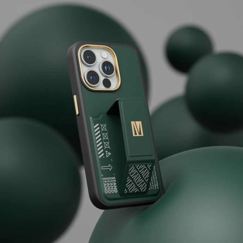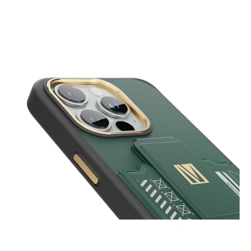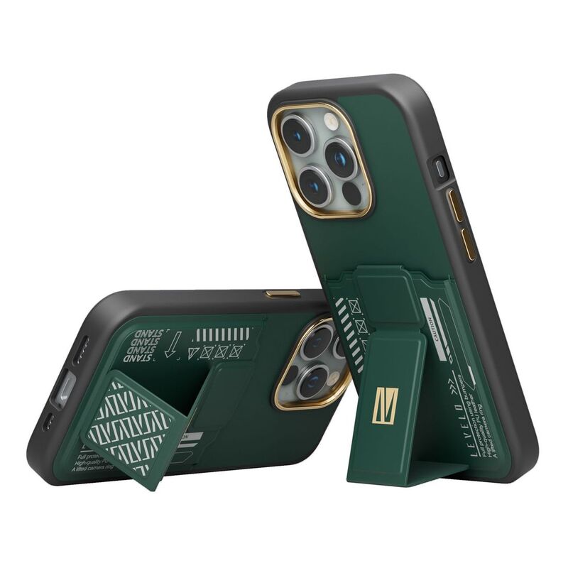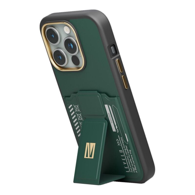 Levelo Morphix Grip-Stand Case with Built-In Card Slot for iPhone 15 Pro Max - Green