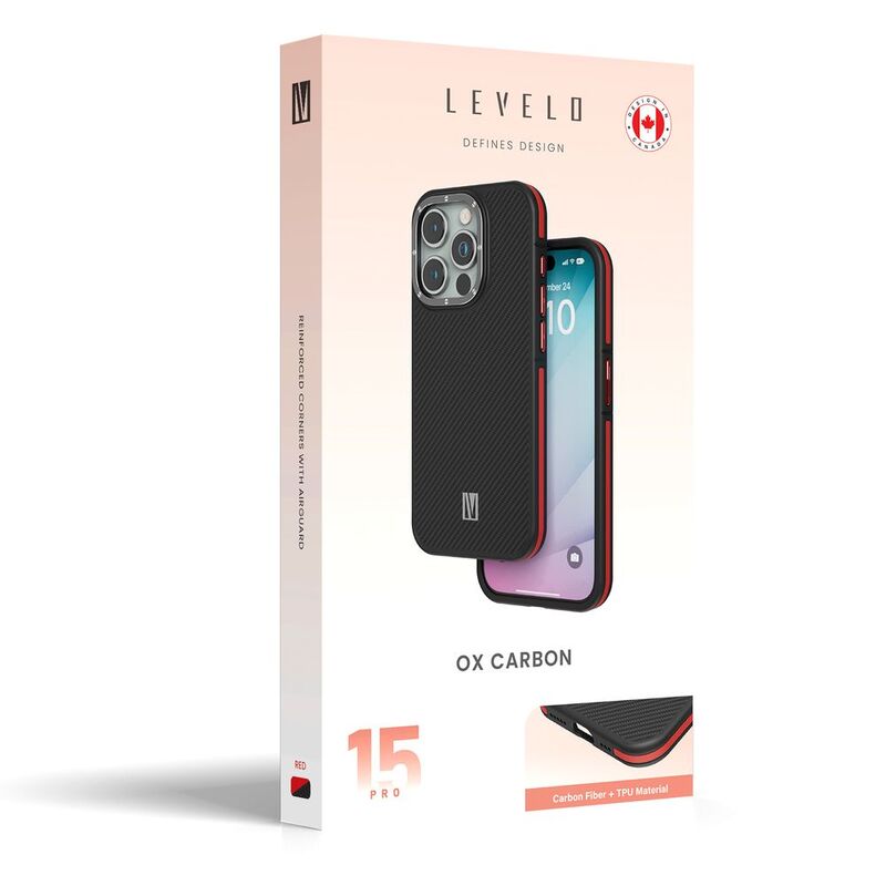 Levelo Ox Carbon Case For iPhone 15 Pro - Red
