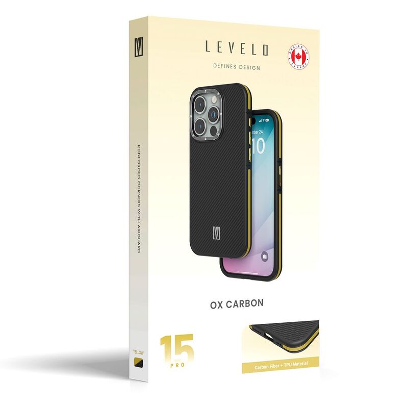 Levelo Ox Carbon Case For iPhone 15 Pro - Yellow