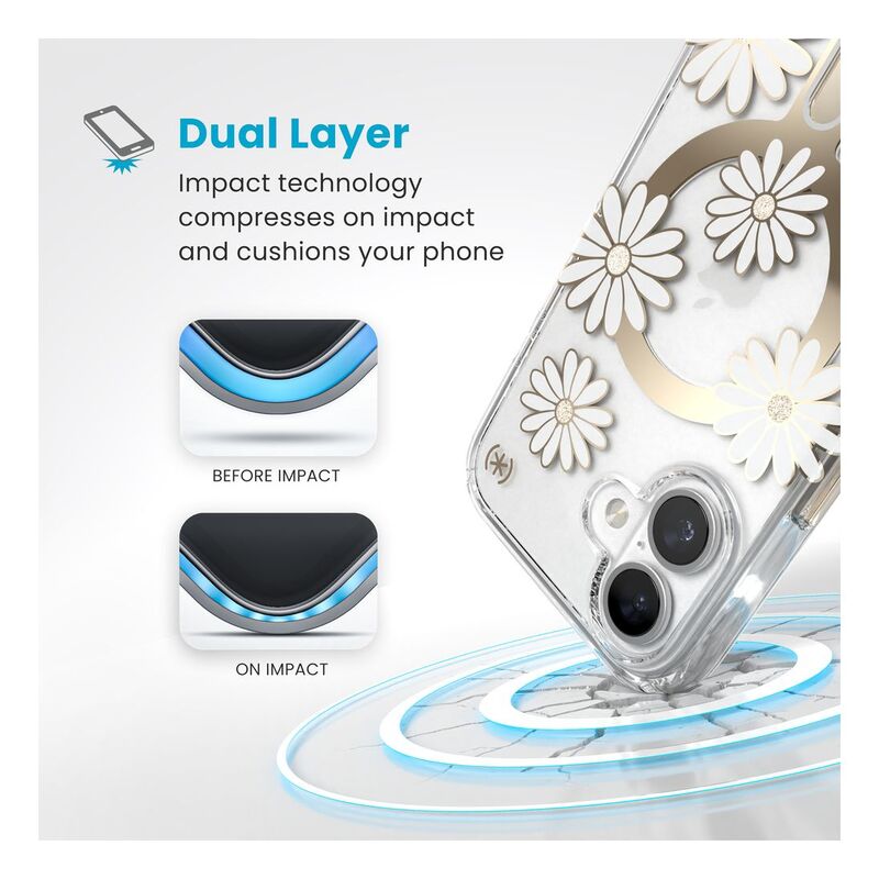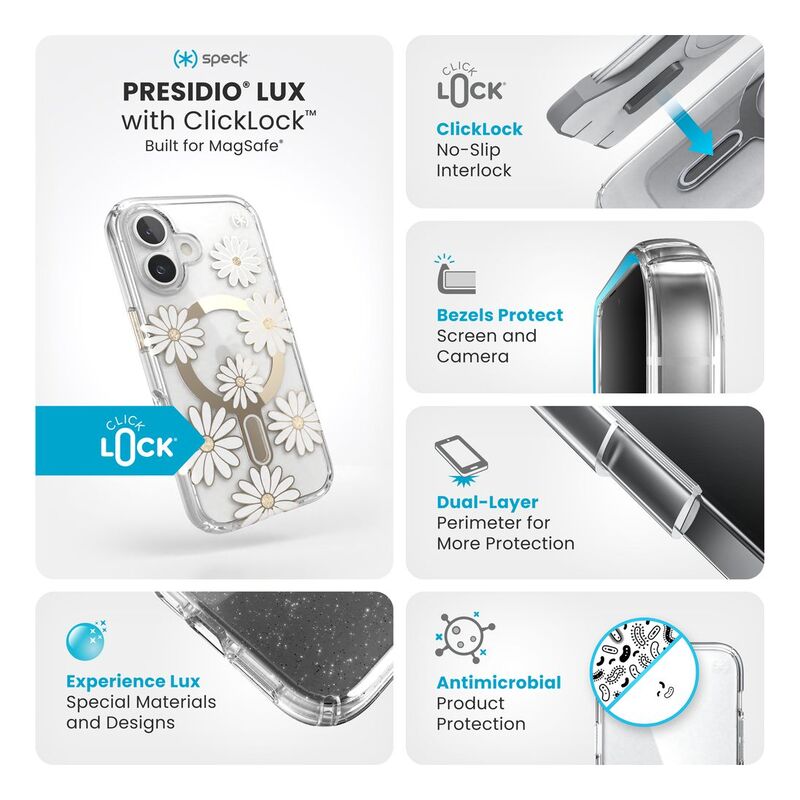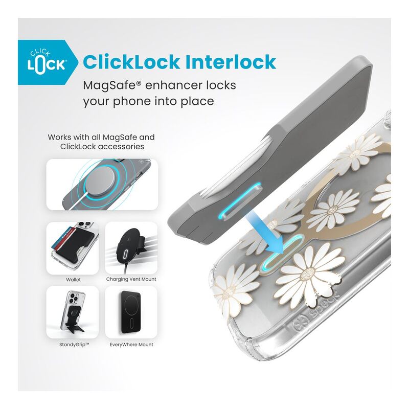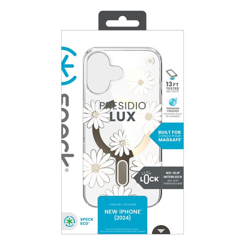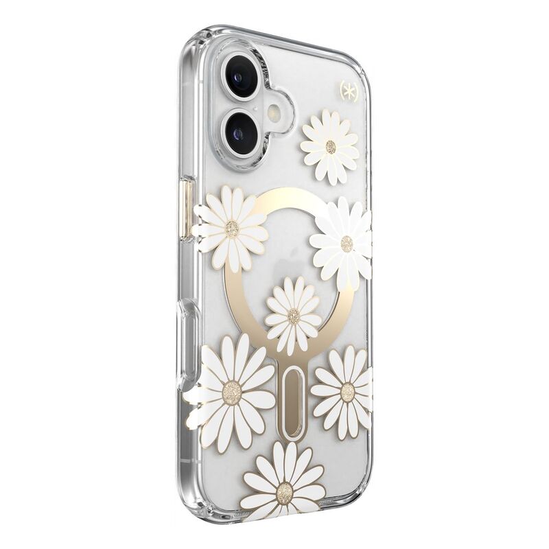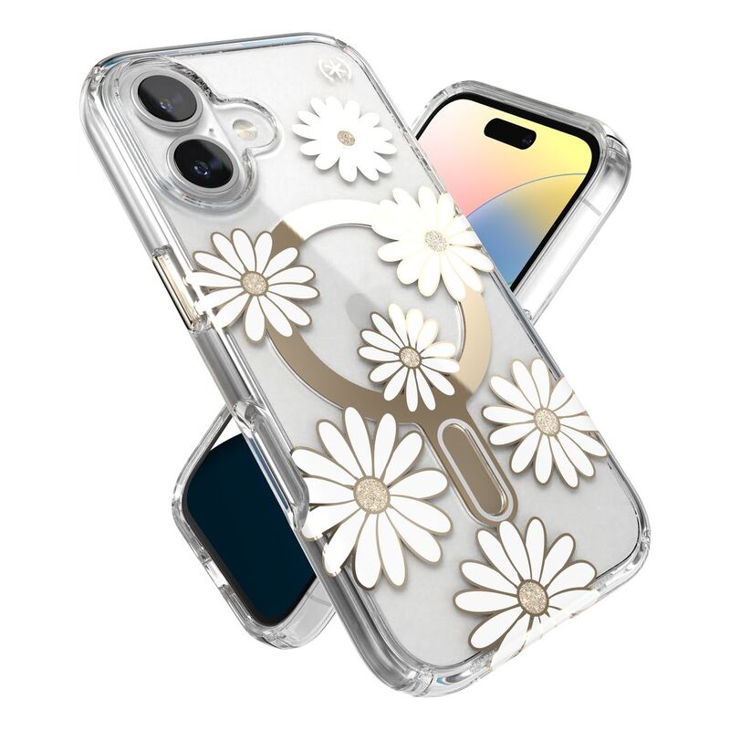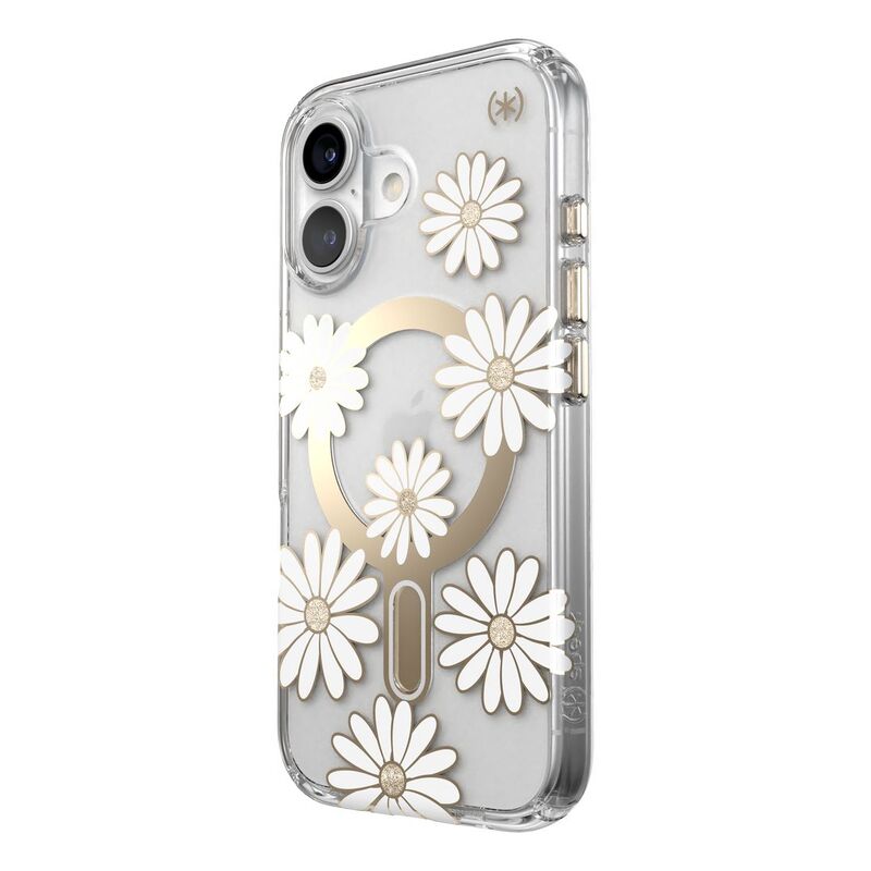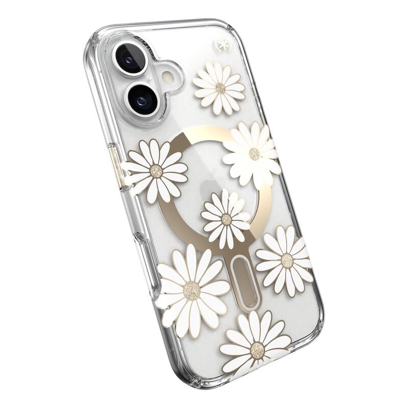 Speck iPhone 16 Presidio Lux Glitter Case With MagSafe And ClickClock - Sunshine Daisies/Clear
