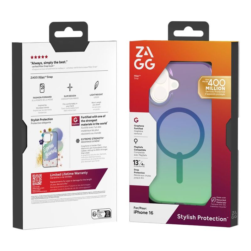 Milan Snap is the stylish, eco-friendly case that’s serious about drop protection. Engineered for durability and sustainability, Milan Snap is made with up to 84% recycled materials and provides up to 13 feet of drop protection. Milan Snap comes in an array of striking patterns and designs that let you express your individuality. Its slim, lightweight design fits comfortably in your hand, pocket, or bag. And Milan Snap is compatible with MagSafe and most wireless chargers. Choose Milan Snap and embrace style without compromise.