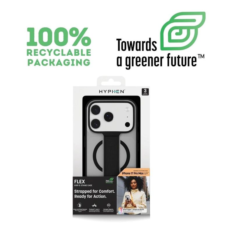 HYPHEN FLEX Grip & Stand MagSafe Case - Gray - iPhone 17 Pro Max - 6.9"