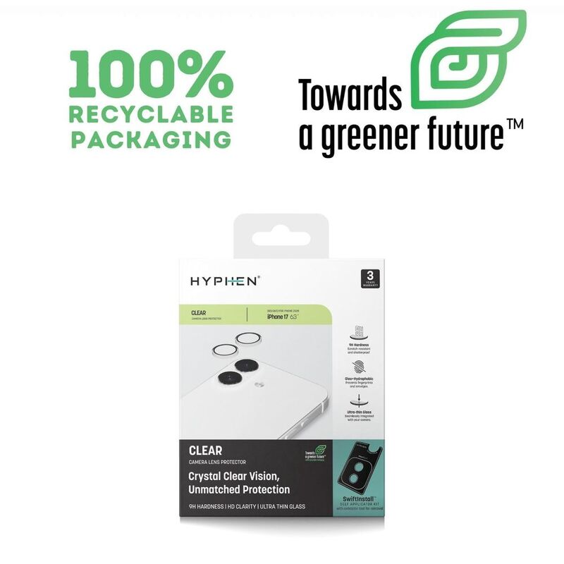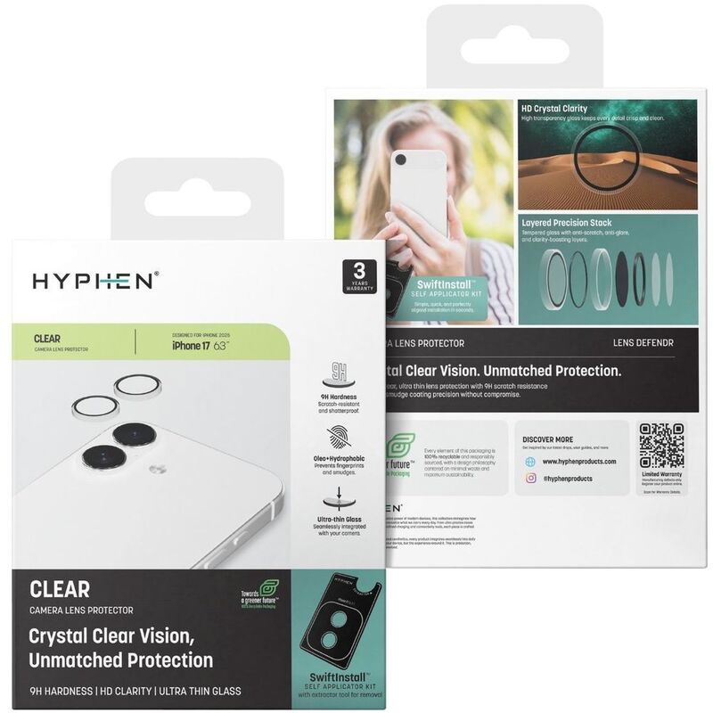 HYPHEN Camera Lens Protector - Clear - iPhone 17 with Self Installation Board