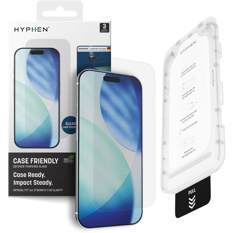 HYPHEN DEFENDR Case Friendly Tempered Glass with Applicator - iPhone 17 Air - 6.6" with Self Applicator Kit