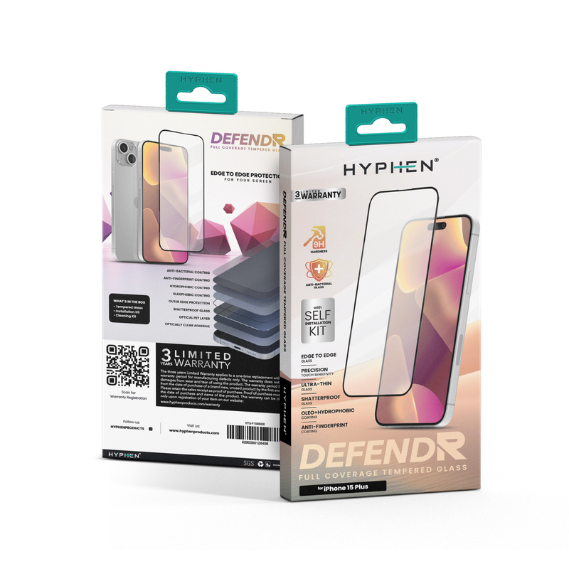 HYPHEN Defendr Full Coverage Tempered Glass with Applicator for iPhone 15 Plus - 6.7-Inch