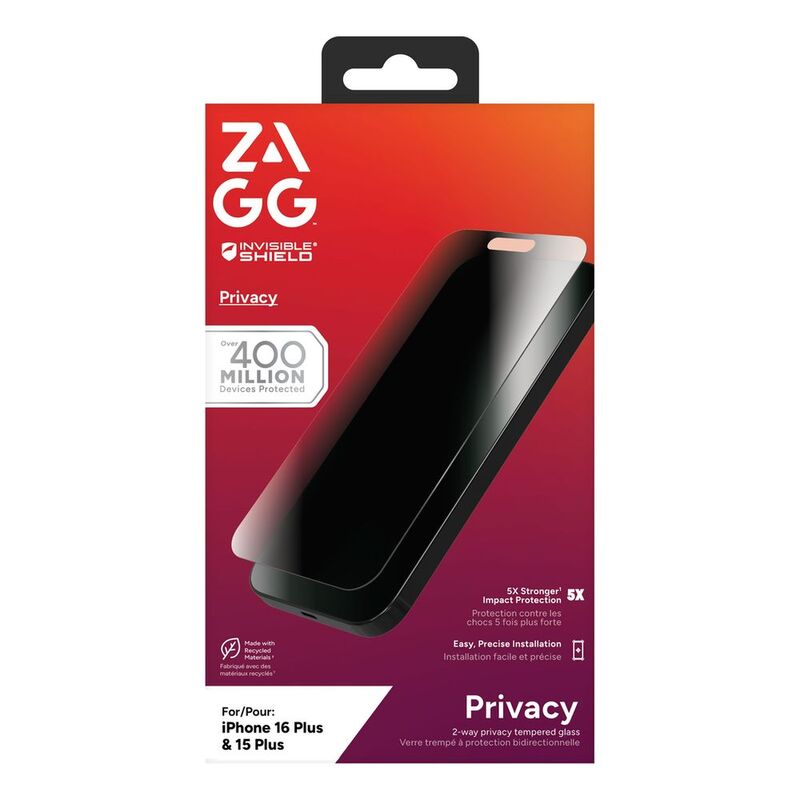 Zagg Invisibleshield Glass Elite Privacy Screen Protector for Apple iPhone 16 Plus/ 15 Plus