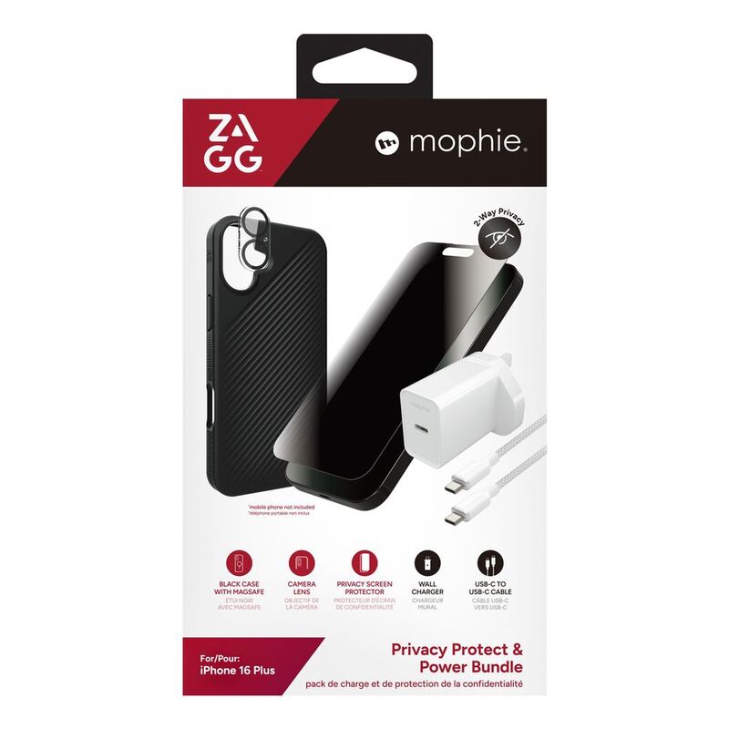 Zagg Luxesnap/ IS Privacy/ Glass Elite Camera/ Cable & Power Bundle for iPhone 16 Plus