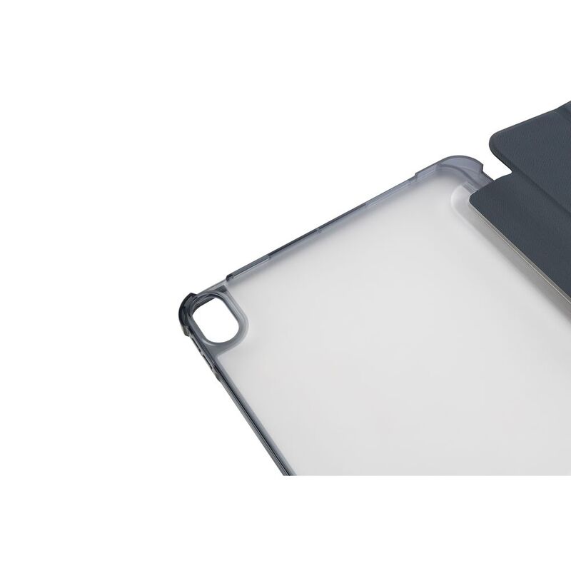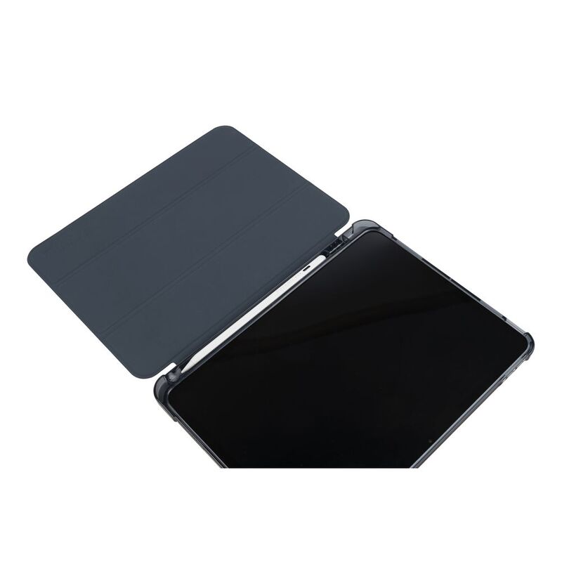 Ultra-protective cover for iPad Air 11" M2 (2024), part of which is made of recycled plastic. The front cover features a satin-effect material and converts into a convenient stand. The anti-shock rear shell is made from transparent double-injected polycarbonate bordered with TPU for easier iPad insertion. The Satin cover has an internal compartment to store your Apple Pencil and an external holder for charging it. Military standard test approved.