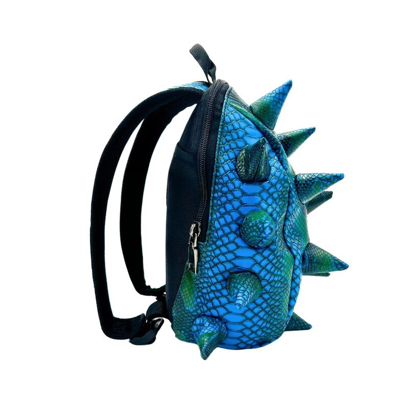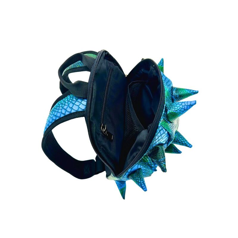 Blue Mamba Mini Backpack simply redefines cool. With its striking blue and green reptilian fabric and bold dinosaur spikes, this bag isn't just an accessory; it's a statement. Blue Mamba flows seamlessly between street-smart and standout, ready to take on whatever comes your way. Designed for those who move with purpose and style, Blue Mamba Mini Backpack keeps your gear organized while you make your mark.