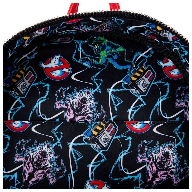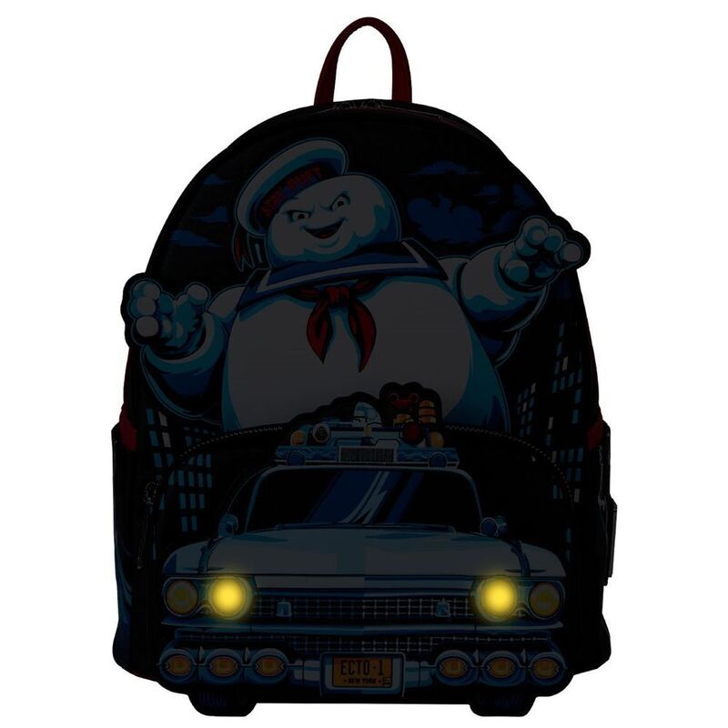 Grab your proton pack! Our Ghostbusters mini backpack is ready to unleash some fun. The Stay Puft Marshmallow Man, his applique rising up over the top of the front pocket, creates an iconic disturbance. The Ectomobile appears on the front pocket as a printed applique, and two headlights, along with one red light at the top, light up in the dark. There’s enough room to pack just what you need to enjoy an evening of roasting marshmallows, telling ghost stories, or making an adventurous getaway in style.