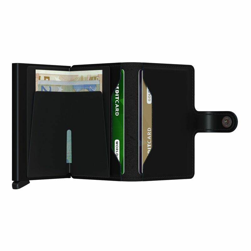 Based on the award winning SECRID Cardprotector, the Miniwallet is both a compact and secure wallet. In addition to the cards in the Cardprotector, the top quality leather interior offers space for a few cards, paper money, receipts, and business cards and some coins.