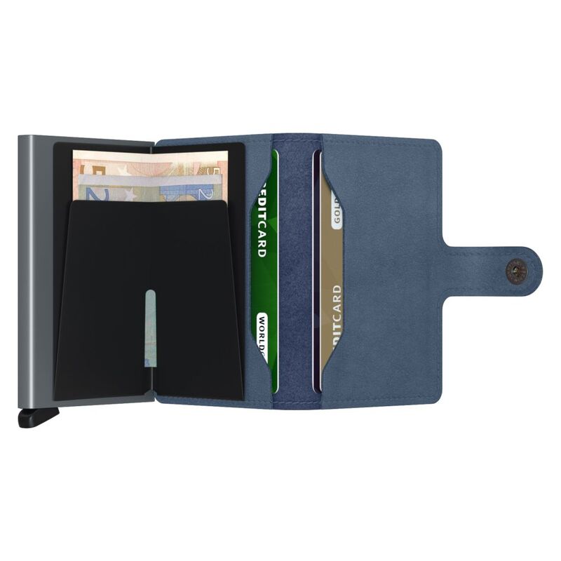 Based on the award winning SECRID Cardprotector, the Miniwallet is both a compact and secure wallet. In addition to the cards in the Cardprotector, the top quality leather interior offers space for a few cards, paper money, receipts, and business cards and some coins.