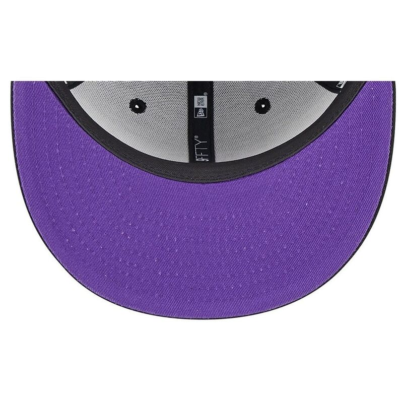 The New Era baseball cap is made of high-quality materials. The classic cut with a wide brim gives a distinctive look, making the cap a perfect complement to your outfit. A contrasting logo of the NBA team - Los Angeles Lakers - is embroidered on the front. There is a small New Era logo on the left side and the NBA logo on the back. The cap has a distinctive 6-panel construction, making it solid and durable. The design has eyelets that ensure adequate air circulation and wearing comfort. The New Era 60424748 model has an adjustable snapback closure that allows for an individual fit of the cap. The wide visor effectively protects against the blinding sun. There is a sticker with the brand logo on the visor that can be easily peeled off without leaving any traces. Black cap with purple and white elements.