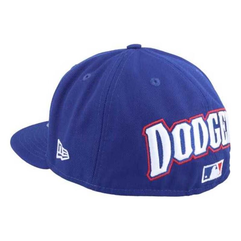 This New Era 59FIFTY Los Angeles Dodgers flat cap from the MLB Upside Down collection features a reverse-embroidered Dodgers logo on the front panels, the team name on the right and reverse, and the MLB Batterman and New Era flag embroidered on the left side.