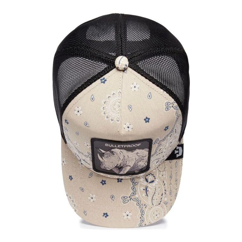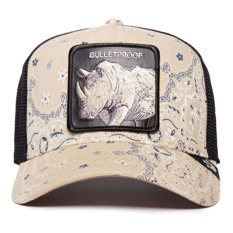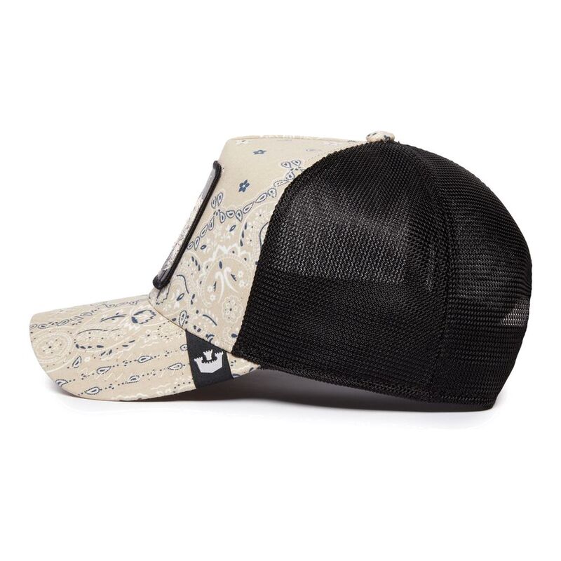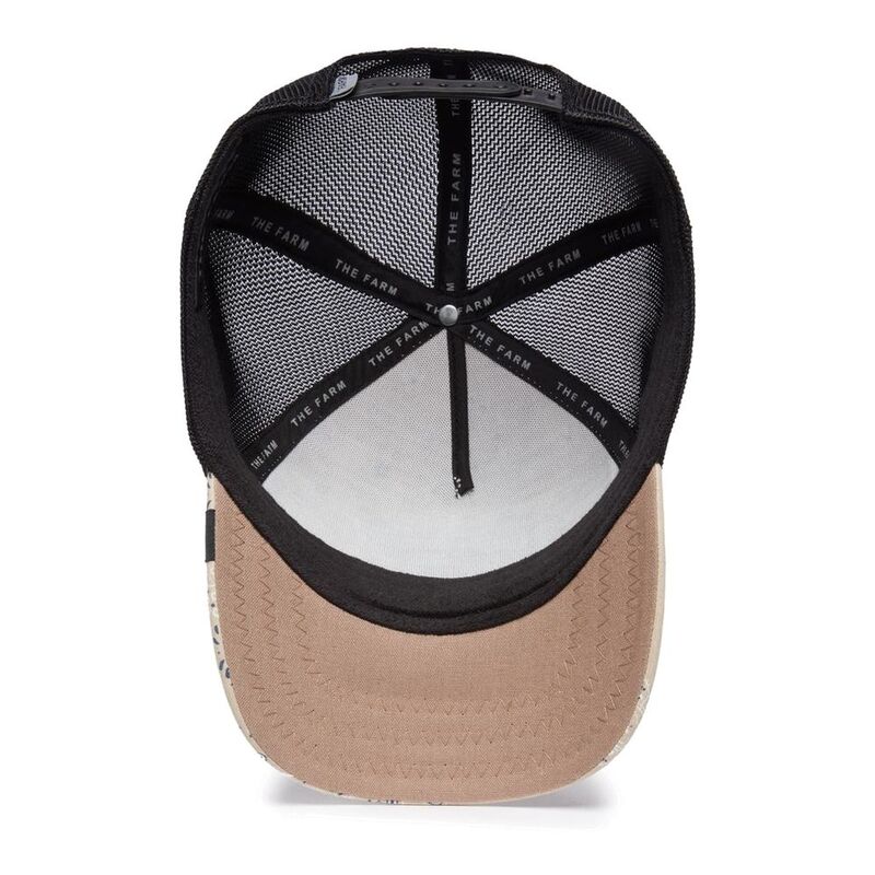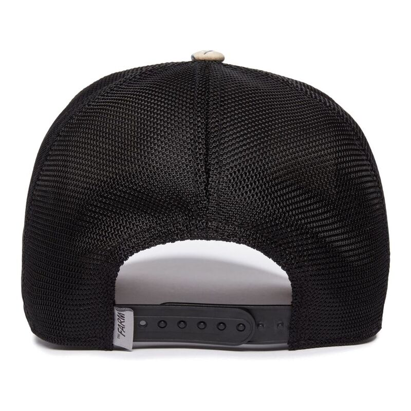 Goorin Bros "All Eyes On Me" tan cap features a bold embroidered patch, breathable mesh back, adjustable snap closure, and a stylish, standout streetwear look.