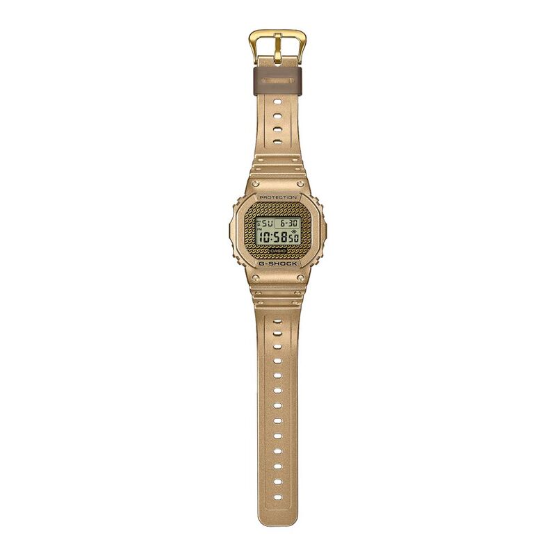The DWE-5600HG features the popular gold and black color combination with a dial finished in a chain pattern for a DWE-5600 timepiece with truly hot hip hop style.