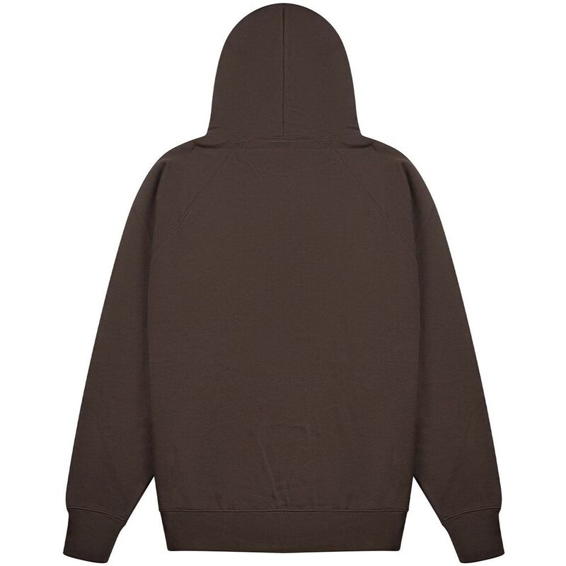 This hoodie in an elegant wood hue features an oversized fit with long sleeves. The attached hood showcases a rubber brand logo, complemented by a bold "ESSENTIALS" graphic on the front. Crafted from premium cotton and polyester blend, it also boasts a FOG graphic, kangaroo front pocket, ribbed cuffs, and a thick hem for a touch of refined style.