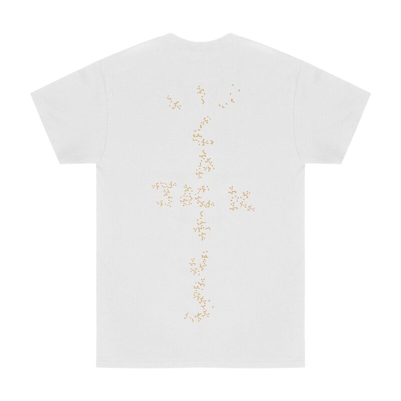 The Travis Scott x McDonald's Sesame T-shirt in white showcases a bold red and yellow logo mashup, blending Travis Scott’s signature Cactus Jack with McDonald's iconic branding. On the back, the design features the Cactus Jack logo creatively spelled out using sesame seeds, adding a unique touch to this collaboration.