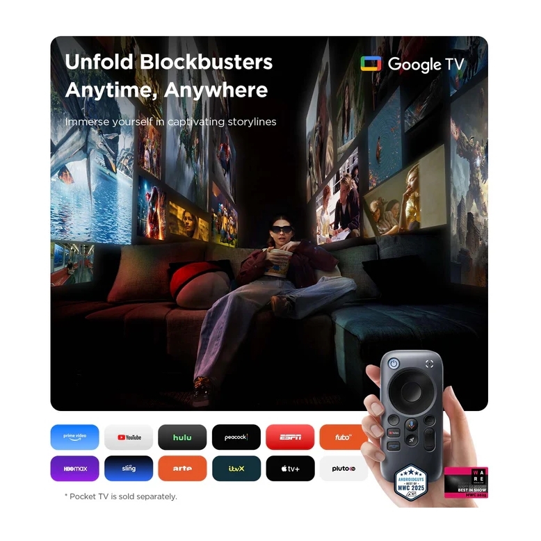 • Best Video Streaming Combo: Pair RayNeo AR glasses with a Pocket TV for an optimal streaming experience. Watch content from Google TV, Hulu, and YouTube on an attractive screen. Portable cinema on demand for streaming enthusiasts, anywhere you go
