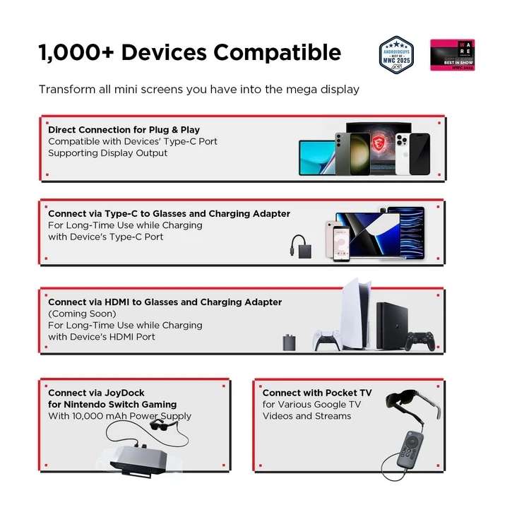 • Best Gaming Combo: RayNeo’s JoyDock expands Nintendo Switch into an immersive screen and adds a 10,000 mAh battery. Enjoy uninterrupted gaming anywhere without worrying about battery life during intense sessions. Ultimate gaming on the go.