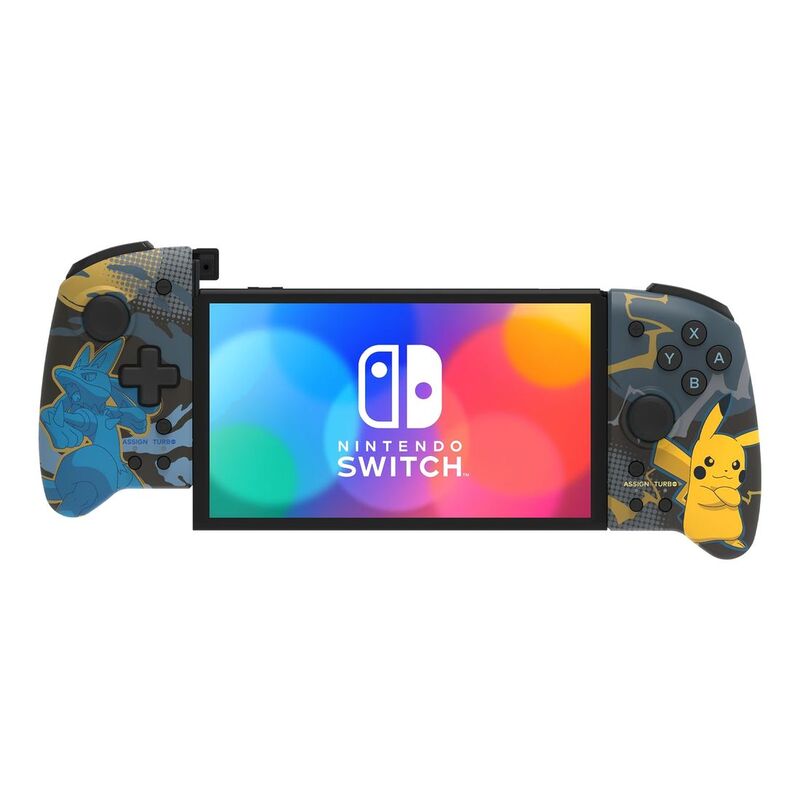Enjoy the full-size controller experience in handheld mode with the HORI Split Pad Pro (Lucario & Pikachu)! Featuring full-size analog sticks, a precision D-pad, and large shoulder buttons, designed for comfort and accuracy, even during marathon gaming sessions. Advanced features include assignable rear triggers, turbo functionality, and more. Perfect for a wide range of genres available on the Nintendo Switch. Enjoy a new gaming experience with the Split Pad Pro! (Not a wireless controller - only for handheld mode. Does not include motion controls, HD rumble, NFC, or IR Camera.) Officially Licensed by Nintendo & Pokémon.
